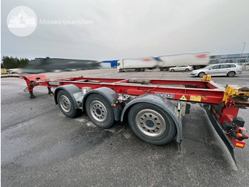 Kijk wat op voorraad isManufacturer: Renders Model: RPW 10 Model year: 2006 Inspection status: Inspected until 2025-09-30 Suspension: Air Tires: See pictures for condition Tyre size: 385/55r22.5 Brakes: Disc brakes Axles: BPW Features: Liftable first axle Extendable for two containers Container lock Slidable bogie Defects: Damage and marks are present, see pictures Shut-off valve for the extension is sticking and needs overhaul A crack is missing Minor cracks are present at the front, see pictures Dimensions and weights: Length: 12500 - 12750 mm Width: 2500 mm Coupling distance: 5980 - 8730 mm Tariff weight: 5950 kg Total weight: 43000 kg Maximum load weight: 37050 kg Tax weight: 24000 kg Wheelbase: 1-2: 1410 mm 2-3: 1310 mm We reserve the right for any typos in the ad text. Thank you for your understanding. A warm welcome to us at Maskinpunkten!